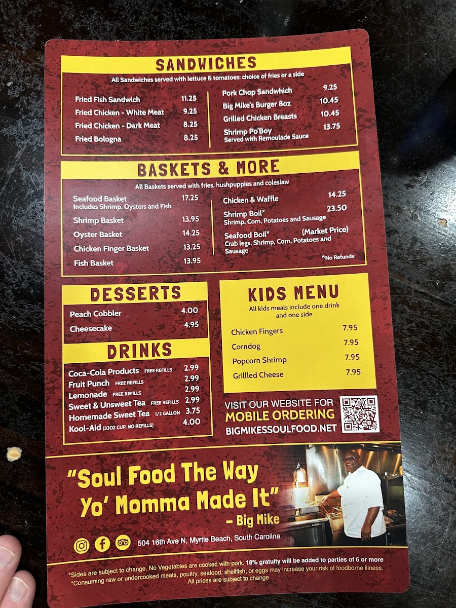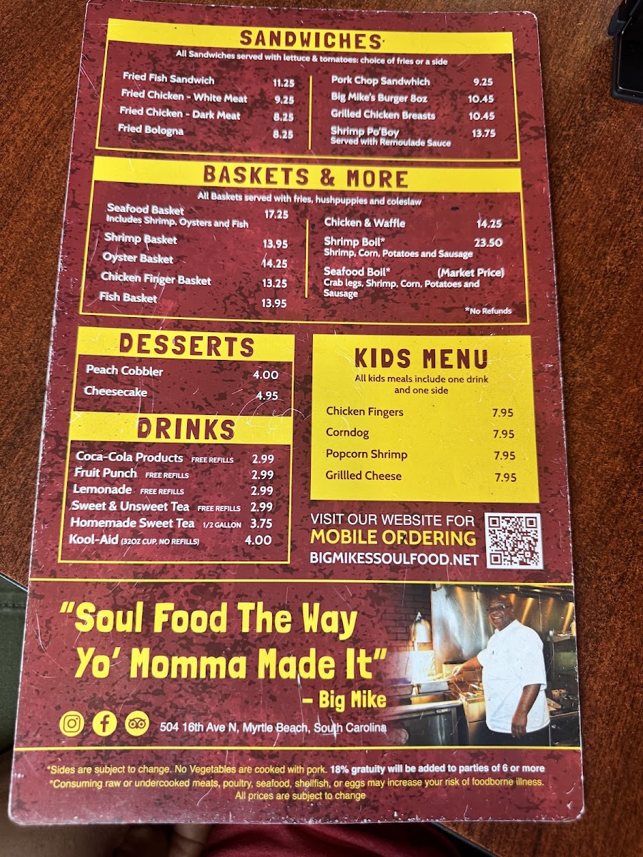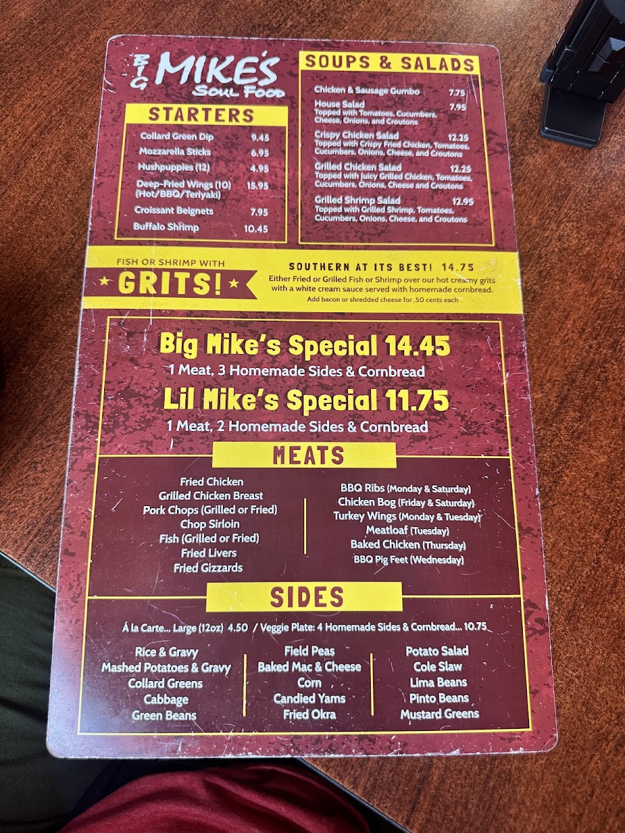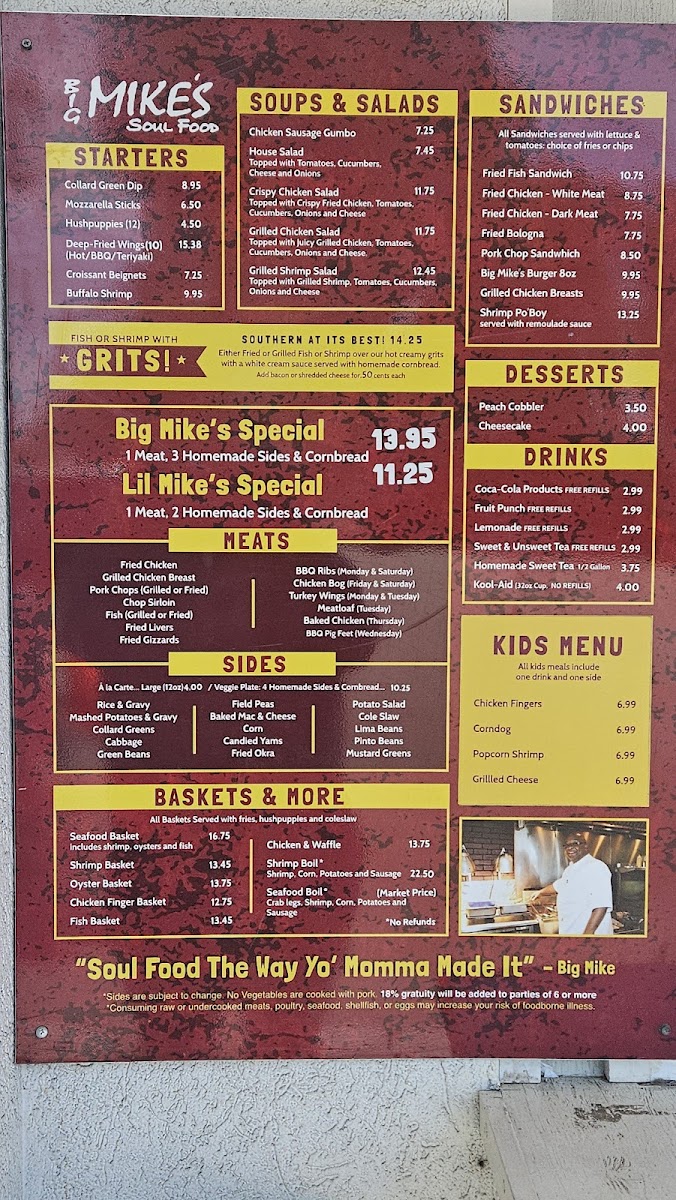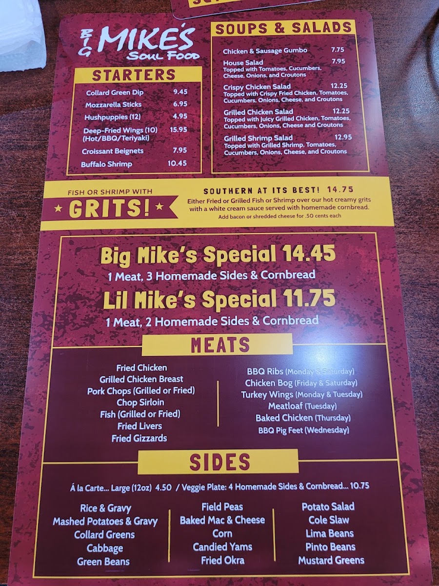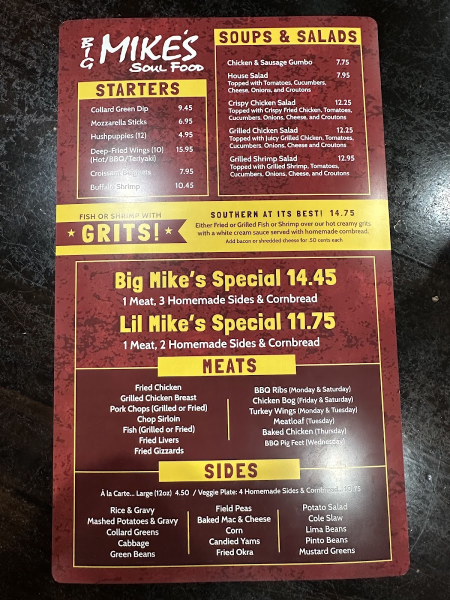 Big Mike's Soul Food offers a menu rooted in classic Southern comfort, featuring hearty dishes and familiar flavors that feel like a meal at a family gathering. The menu embraces soul food traditions with a straightforward, approachable selection that fits both lunch and dinner occasions.